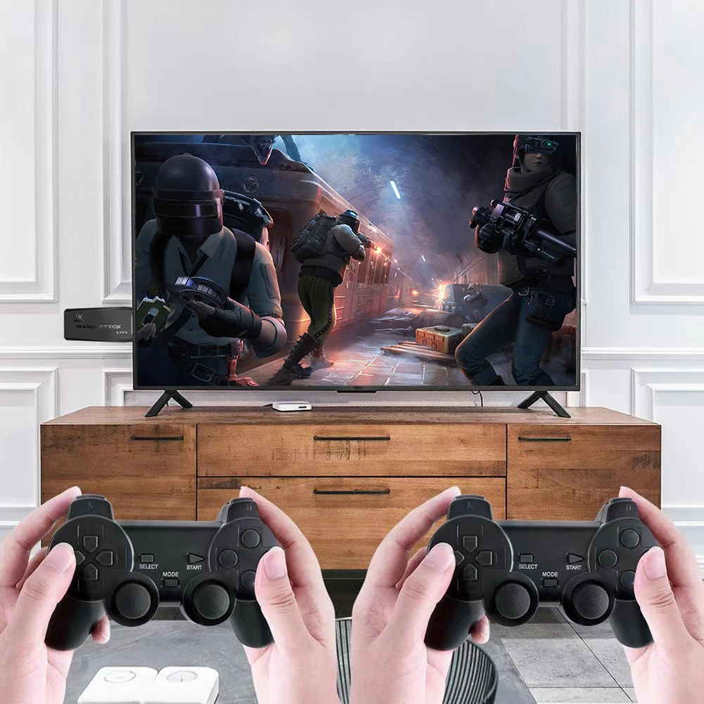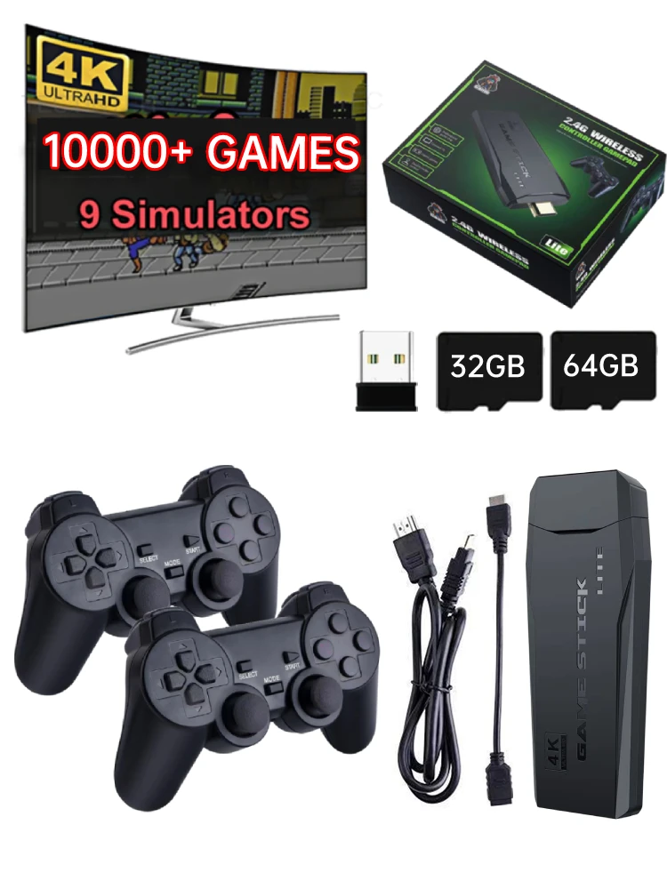 | Video Game Sticks M8 Console Video Game Console 2.4G Dual Wireless Controller Retro Games Console 9 Emulator HD Output Christmas Gift Feature: 1. Extensive Game Library: The video game sticks game stick comes pre-loaded with over 10,000 built-in games and 9 emulators, allowing you to enjoy all your favorite retro games console titles without the need for downloads or internet connectivity. 2. Wireless Connectivity: Experience the freedom of gaming with a 2.4GHz wireless game controller, letting you comfortably sit on your couch while playing your favorite games without the hassle of tangled wires. (AAA batteries not included in the package.) 3. HDMI-Compatible Output for High Definition: Connect the retro game-stick to your TV using the included mini HDMI-Compatible cable for an immersive gaming experience. Enjoy classic video games in stunning HD quality on your big screen. 4. User-Friendly Operation: Setting up the video game console is a breeze-simply plug the stick into a power source, connect it to your TV, and for switch to the HDMI-Compatible channel. No complicated installations or setups required! 5. Perfect Gift for All Ages: The M8 retro game-stick is an ideal gift for both kids and adults, providing hours of entertainment and nostalgia. It's perfect for birthdays, holidays, or any occasion where you want to share the joy of classic gaming. Specification: Origin: Mainland China Operating system:Compatible with Linux Retroarchiopen source system Language: Support multiple languages Emulator: Compatible with MAME / FC / GB / MD / SFC / PS / ATAR | 2600 / ATAR | 7800 Game list: Including ps1/atari/mame/sfc/fc/gba/gb/gbc/md emulator games, a total of (32G) 3000+/(64G) 10000+ games CPU: GB2 Memory: 32/64GB (optional) Sdram: DDR3 256MB Flash memory: 128MB Product size: 100x37x20mm/3.94x1.46x0.79inch Note: 1 X Game Console 2 X Wireless Controllers 1 X Wireless Signal Receiver 1 X Usb Charging Cable 1 X Memory Card Package (Optional 32g/64g) 1 X Hd Signal Extension Cable |